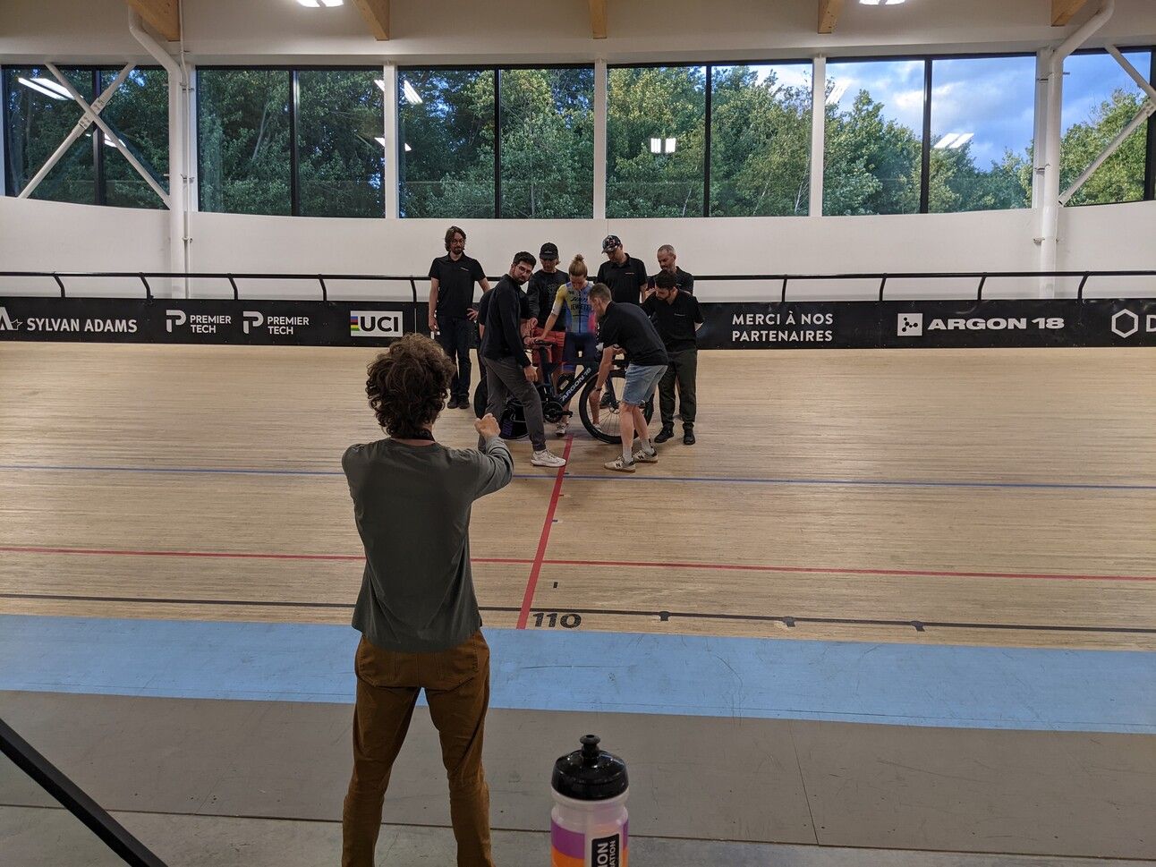 Tamara with Argon-18’s R&D team doing some aero testing in Bromont, Quebec