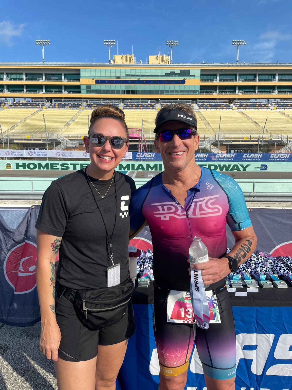 First time racing Clash Miami. Thoroughly enjoyed the course. Swim in a surprisingly clear lake, cycles on the track and nearby roads, then finally two laps around the race track for a hot run.